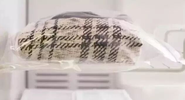 破解方法:把新买的衣服放在保鲜袋里置于冰箱中一段时间再穿会好很多哦~